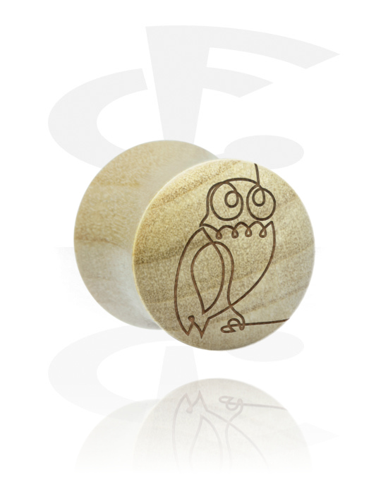 Plug double flared (bois) avec gravure laser une ligne motif "chouette"