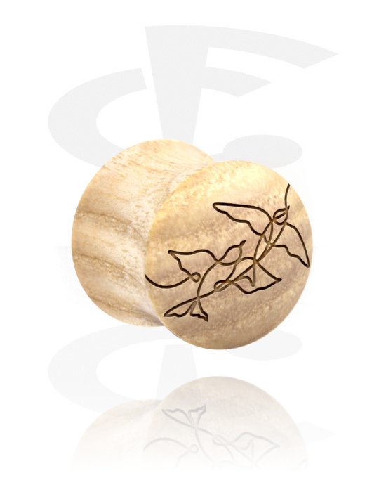Plug double flared (bois) avec gravure laser une ligne motif "oiseaux"