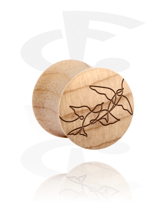 Plug double flared (bois) avec gravure laser une ligne motif "oiseaux"