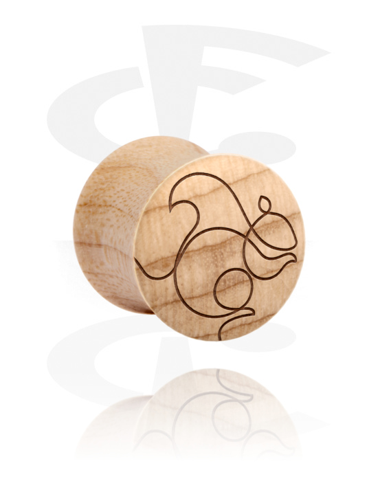 Plug double flared (bois) avec incrustation laser une ligne motif "écureuil"