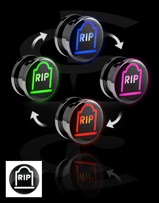 Tunnel à filetage (acier chirurgical, argent) avec pierre tombale avec lettrage "RIP"