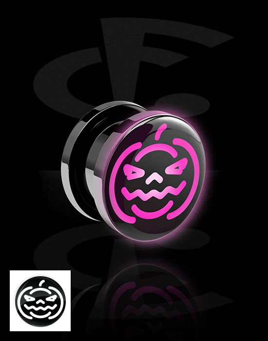 Tunnel à filetage (acier chirurgical, argent) avec accessoire LED et motif halloween "citrouille folle"
