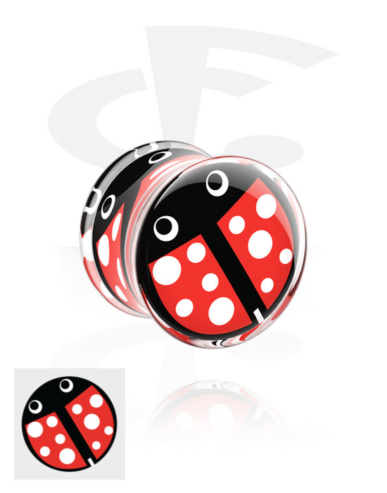 Plug double flared (acrylique, transparent) avec incrustation avec motif coccinelle