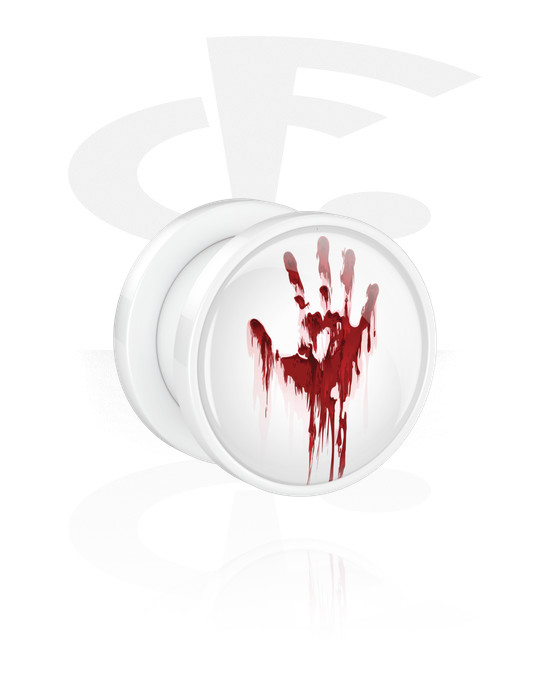 Tunnel à filetage (acrylique, blanc) avec motif d'halloween"main ensanglantée"