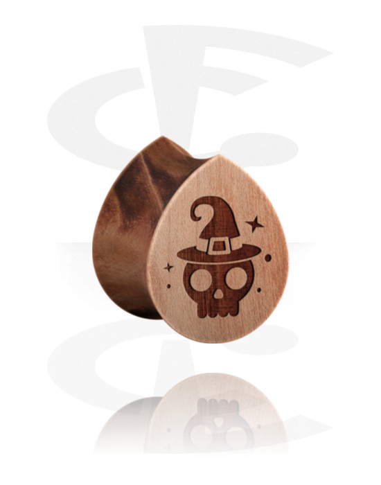 Plug double flared en forme de larme (bois) avec gravure laser "crâne"