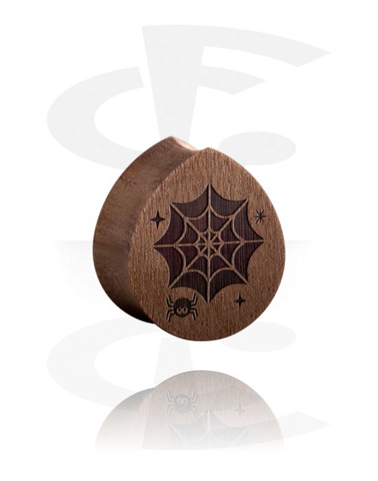 Plug double flared en forme de larme (bois) avec gravure laser "toile d'araignée"