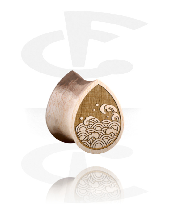 Plug double flared en forme de larme (bois) avec inscrustation laser "vagues"