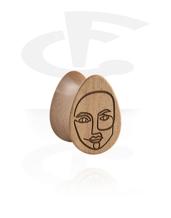 Plug double flared en forme de larme (bois) avec gravure laser une ligne "visage"