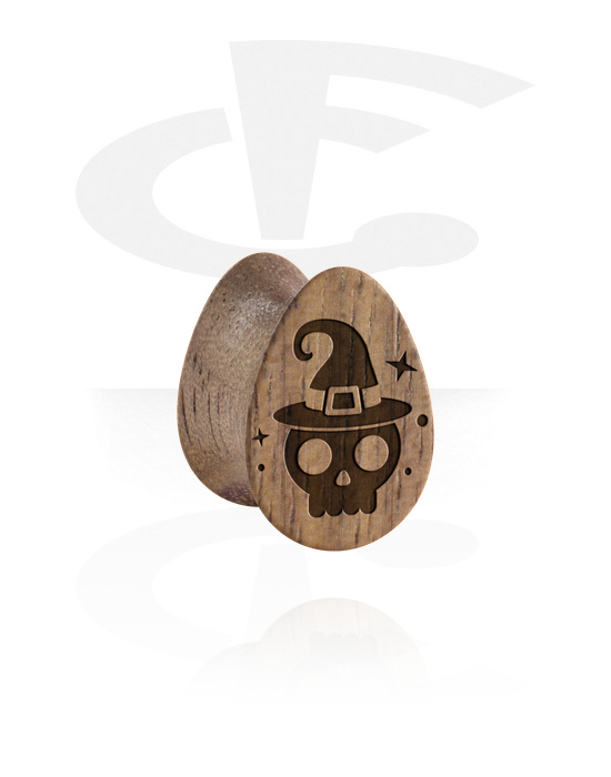Plug double flared en forme de larme (bois) avec gravure laser "crâne"