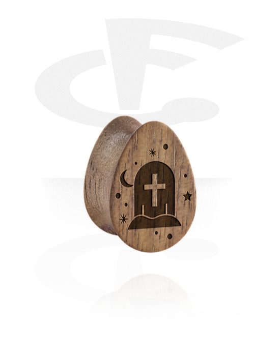 Plug double flared en forme de larme (bois) avec gravure laser "pierre tombale"