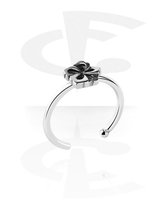 Anneau ouvert pour le nez (acier chirurgical, argent, finition brillante) avec motif fleur