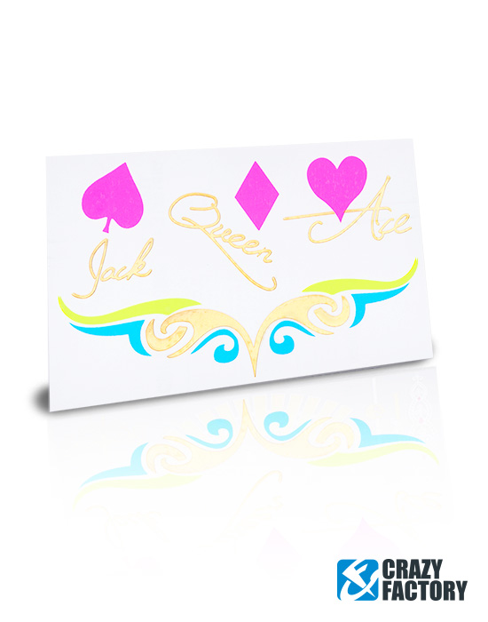 Tatouage temporaire. Facile à appliquer et à enlever avec de l'eau. Le tatouage dure quelques jours. Nos tatouages néon s’illuminent à la lumière UV. Les couleurs fluorescentes attirent tous les regards sur les fêtes et dans les discothèques !