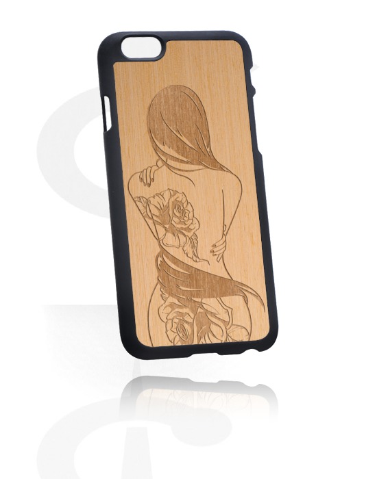Stylish case for your mobile. This case serves both as eye-catching accessory as well as protection against damages. Plastic cover with a wooden inlay and a delicate engraving.