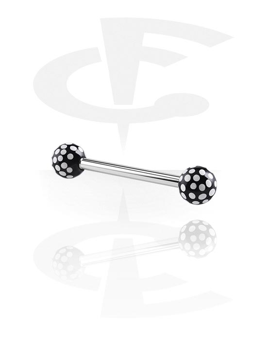 Barbell made of surgical steel with a dotted acrylic ball at each end. Available in different colour combinations. Beautifully wacky!