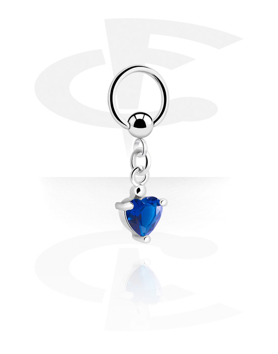Prsten s kuglicom (kirurški čelik, srebrna, sjajna završna obrada) s privjeskom sa srcem