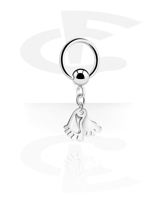 Prsten s kuglicom (kirurški čelik, srebrna, sjajna završna obrada) s privjeskom stopala