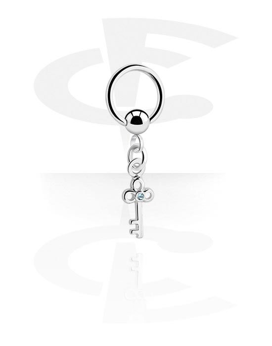 Prsten s kuglicom (kirurški čelik, srebrna, sjajna završna obrada) s privjeskom za ključeve i kristalnim kamenom