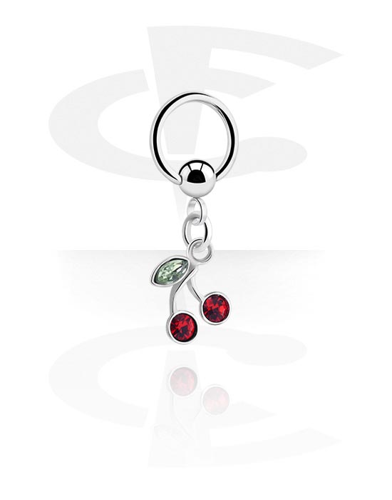 Prsten s kuglicom (kirurški čelik, srebrna, sjajna završna obrada) s privjeskom s trešnjom i kristalnim kamenjem
