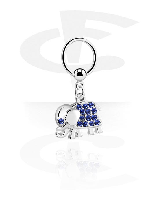 Prsten s kuglicom (kirurški čelik, srebrna, sjajna završna obrada) s privjeskom sa slonom i kristalnim kamenjem