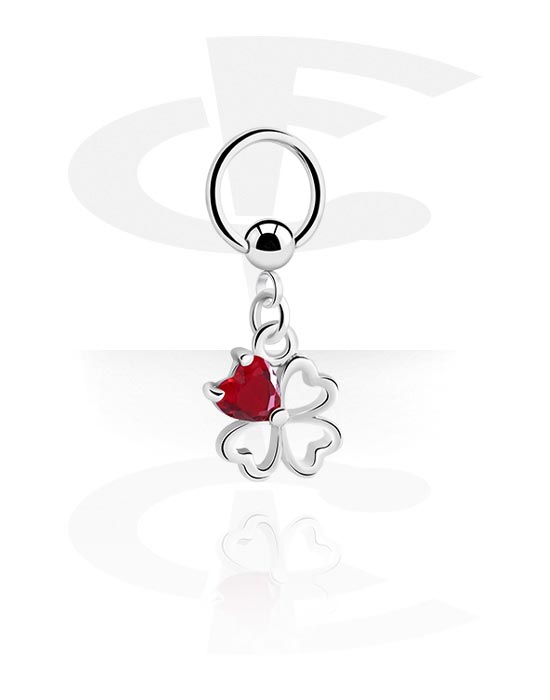 Prsten s kuglicom (kirurški čelik, srebrna, sjajna završna obrada) s privjeskom djeteline i kristalnim kamenom