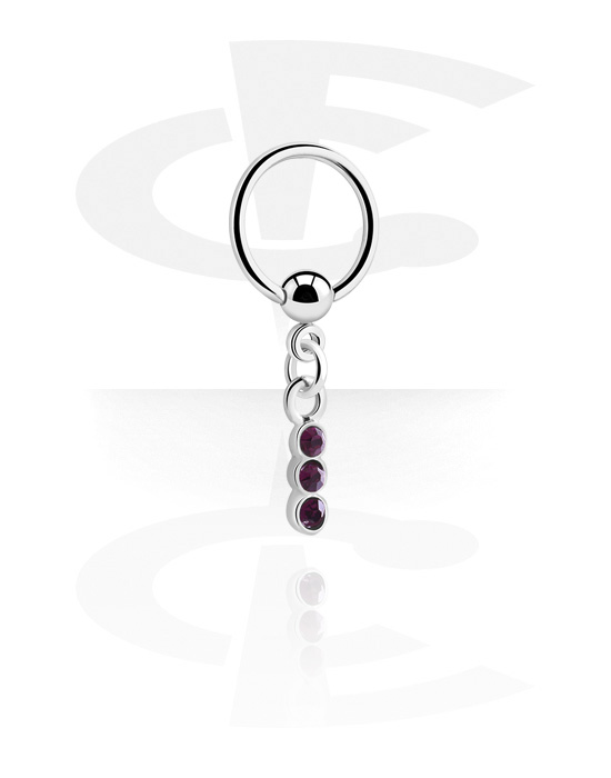 Prsten s kuglicom (kirurški čelik, srebrna, sjajna završna obrada) s privjeskom i kristalnim kamenjem