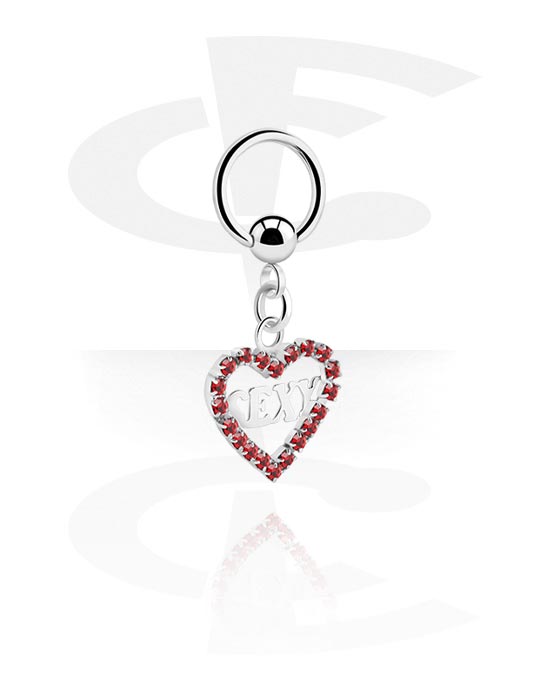 Prsten s kuglicom (kirurški čelik, srebrna, sjajna završna obrada) s privjeskom sa srcem i kristalnim kamenjem