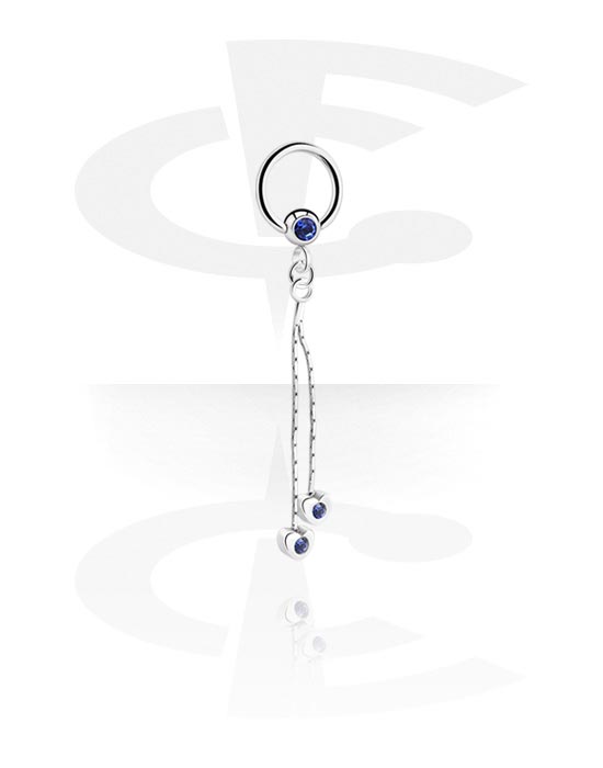 Prsten s kuglicom (kirurški čelik, srebrna, sjajna završna obrada) s kristalnim kamenom i privjeskom