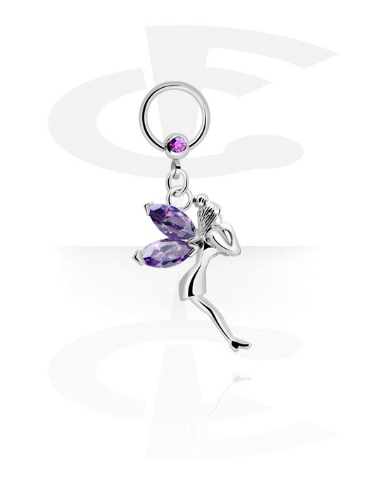 Prsten s kuglicom (kirurški čelik, srebrna, sjajna završna obrada) s privjeskom vile i kristalnim kamenjem