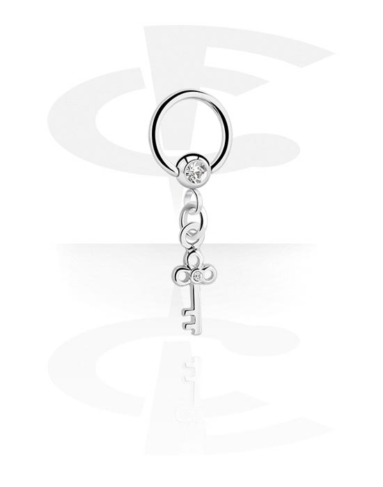 Prsten s kuglicom (kirurški čelik, srebrna, sjajna završna obrada) s kristalnim kamenom i privjeskom za ključeve