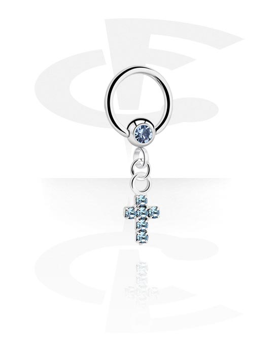 Prsten s kuglicom (kirurški čelik, srebrna, sjajna završna obrada) s kristalnim kamenom i privjeskm s križem