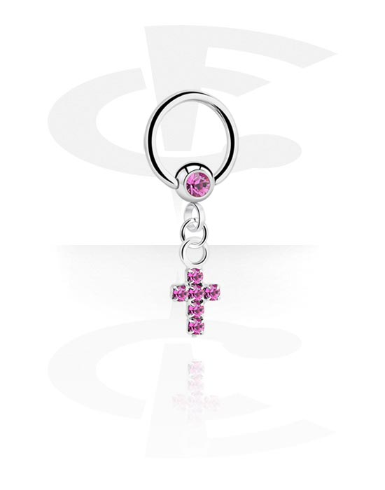 Prsten s kuglicom (kirurški čelik, srebrna, sjajna završna obrada) s kristalnim kamenom i privjeskm s križem