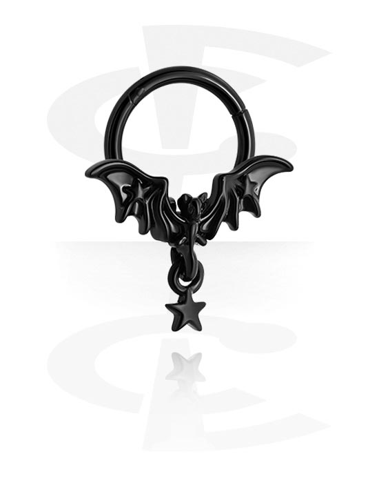 Kliker za piercing (kirurški čelik, crna, sjajna završna obrada) s dizajnom šišmiša