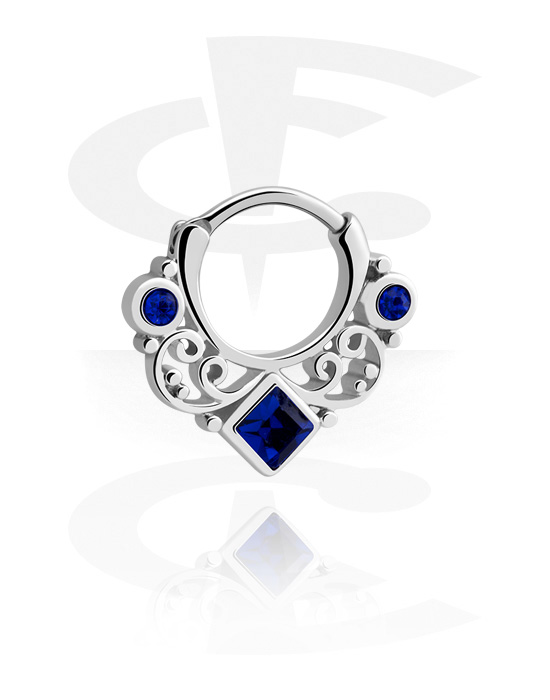 Kliker za piercing (kirurški čelik, srebrna, sjajna završna obrada) s retro dizajnom i kristalnim kamenjem