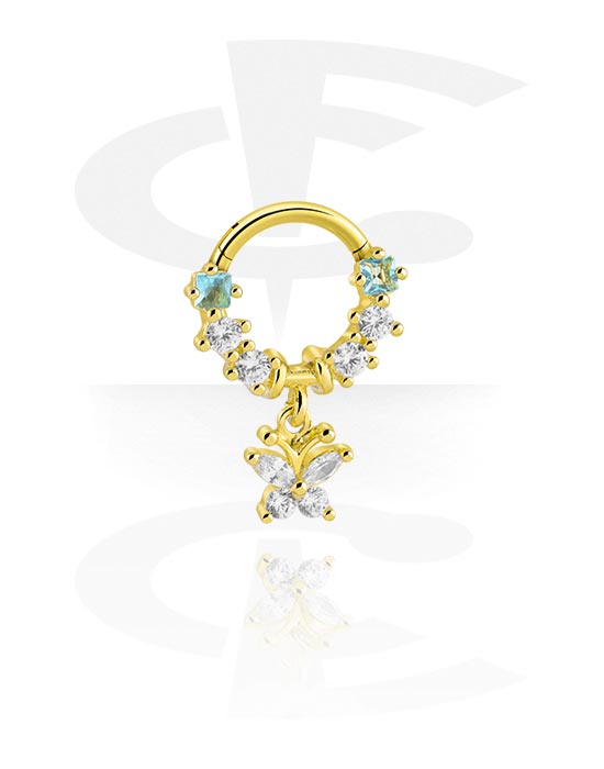 Kliker za piercing (kirurški čelik, zlatna, sjajna završna obrada) s privjeskom s leptirom i kristalnim kamenjem