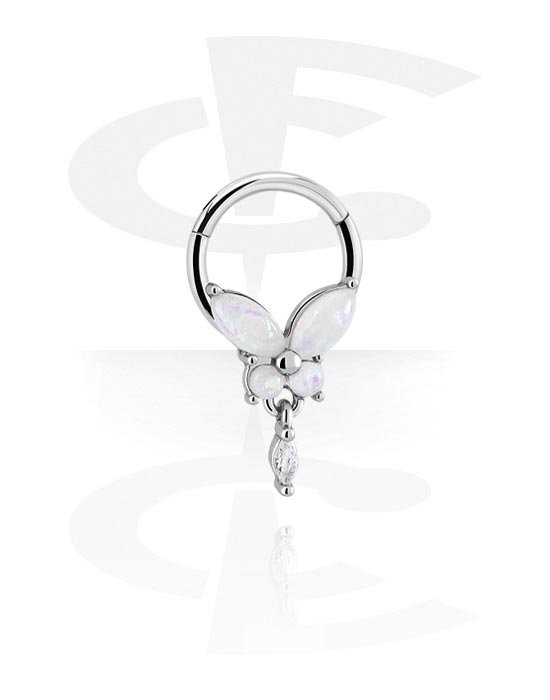 Kliker za piercing (kirurški čelik, srebrna, sjajna završna obrada) s dizajnom leptira i sintetičkim opalom