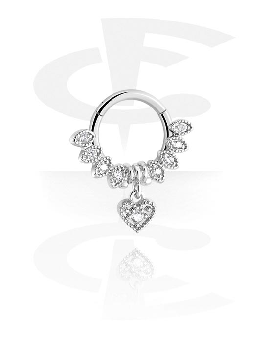Kliker za piercing (kirurški čelik, srebrna, sjajna završna obrada) s privjeskom sa srcem i kristalnim kamenjem
