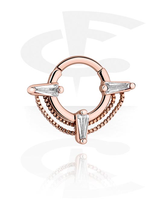 Kliker za piercing (kirurški čelik, ružičasto zlato, sjajna završna obrada) s kristalnim kamenjem