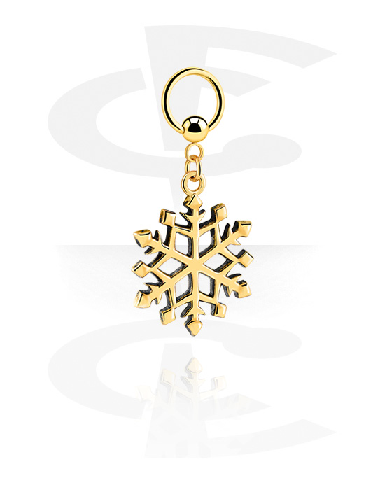 Prsten s kuglicom (kirurški čelik, zlatna, sjajna završna obrada) s privjeskom pahuljice