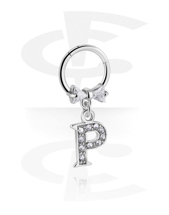 Kliker za piercing (kirurški čelik, srebrna, sjajna završna obrada) s mašnom i privjeskom sa slovom "P"