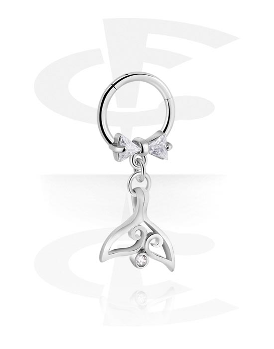 Kliker za piercing (kirurški čelik, srebrna, sjajna završna obrada) s mašnom i privjeskom kitova peraja
