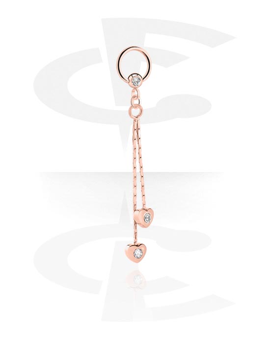Prsten s kuglicom (kirurški čelik, ružičasto zlato, sjajna završna obrada) s kristalnim kamenom i privjeskom