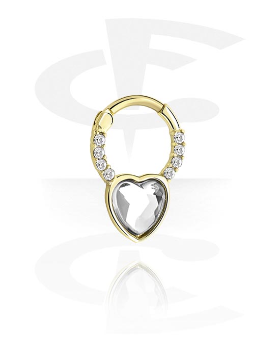 Piercing clicker (surgical steel, zircon steel, shiny finish) s dizajnom srca i kristalnim kamenjem