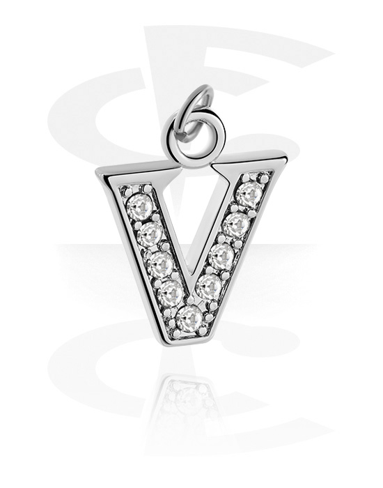 Privjesak (patinirani mesing) s slovom V i kristalnim kamenjem