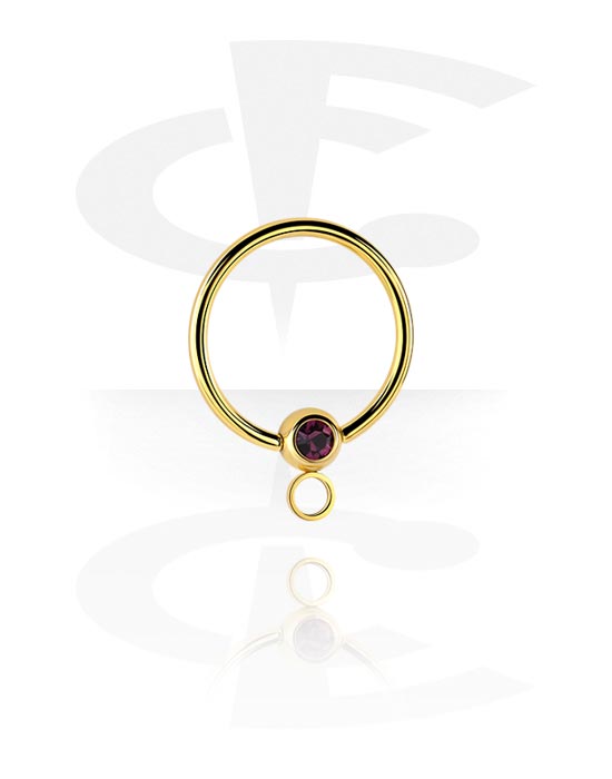 Prsten s kuglicom (kirurški čelik, zlatna, sjajna završna obrada) s kristalnim kamenom i obručem za dodatke