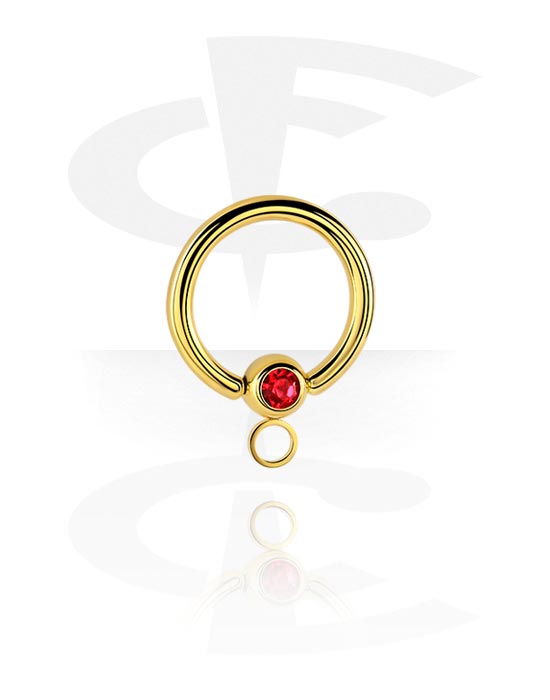 Prsten s kuglicom (kirurški čelik, zlatna, sjajna završna obrada) s kristalnim kamenom i obručem za dodatke