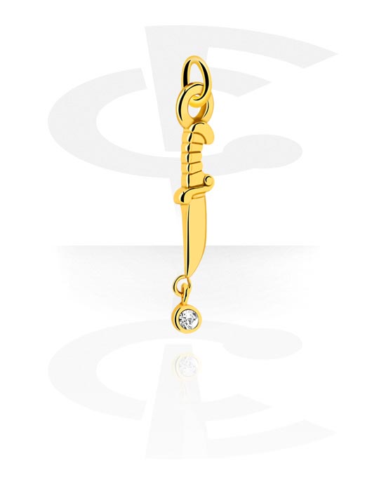 Privjesak (kirurški čelik, zlatna, sjajna završna obrada) s dizajnom mača i kristalnim kamenom