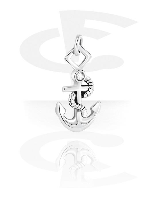 Privjesak (kirurški čelik, srebrna, sjajna završna obrada) s dizajnom sidra i kristalnim kamenom