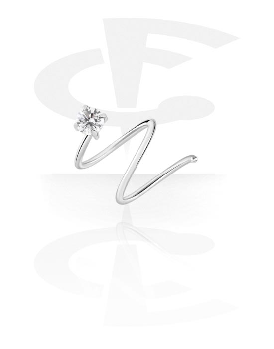 Double nose ring (surgical steel, silver, shiny finish) s kristalnim kamenom