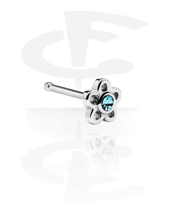 Ravni klin za nos (kirurški čelik, srebrna, sjajna završna obrada) s cvjetnim dodatkom i kristalnim kamenom
