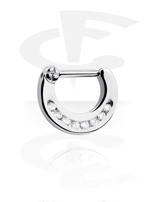 Kliker za septum (kirurški čelik, srebrna, sjajna završna obrada) s kristalnim kamenjem
